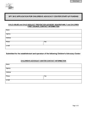 SFY APPLICATION for CHILDREN'S ADVOCACY CENTER Form