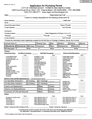 Application for Plumbing Permit City of Virginia Beach Form