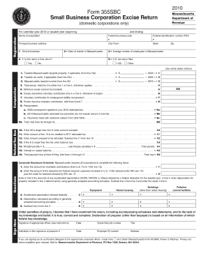 A Massachusetts corporation must file federal Form 1120, and Form 355. If your income is under $100,000 and not subject to a corporate tax in another state, you must file Form 355SBC (small business corporation) instead of Form 355.