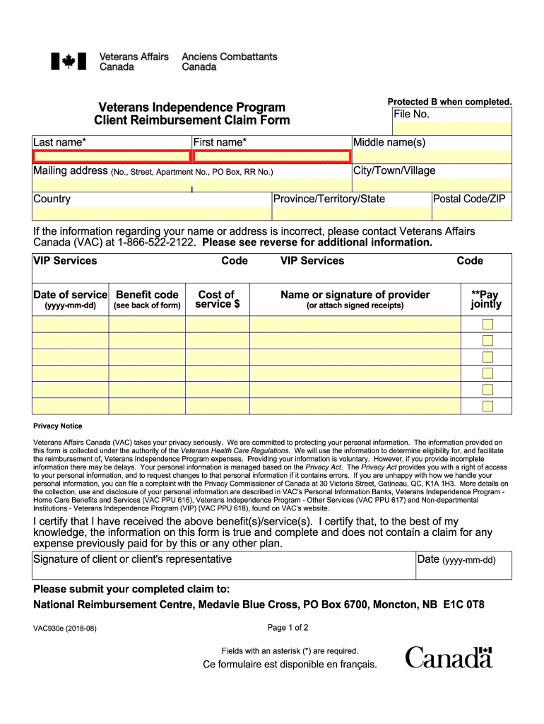 The Vac930e printable form is a crucial document used within the Veterans Independence Program. This form is designed to assist veterans in claiming reimbursements for eligible expenses associated with their independence and well-being. By completing the Vac930e, veterans can ensure they receive the financial support they are entitled to, reflecting the commitment of the U.S. government to assist those who have served.