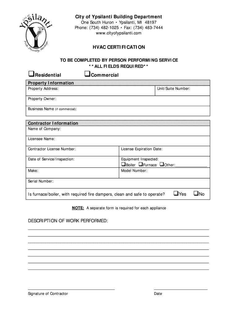 A furnace certification form is a document used to verify that a furnace has been installed and is functioning according to industry standards. This form is essential for compliance with local regulations and ensures that the furnace operates safely and efficiently.