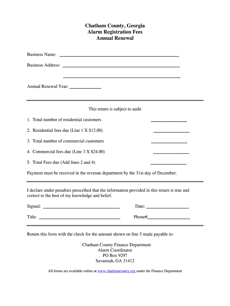 Chatham County Georgia Alarm Registration Fees Annual Renewal Chathamcounty Form
