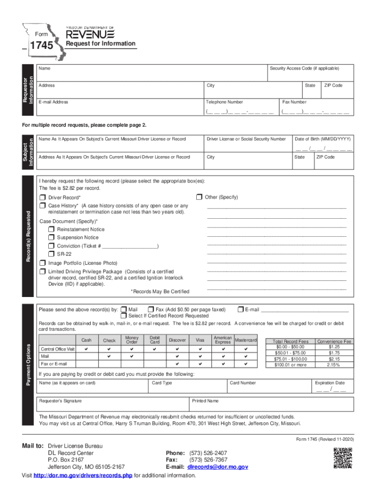 Get more for Form 1745 Missouri Department Of Revenue