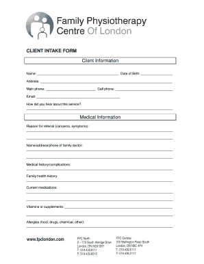 Get more for Client Information Family Physiotherapy Centre Of London