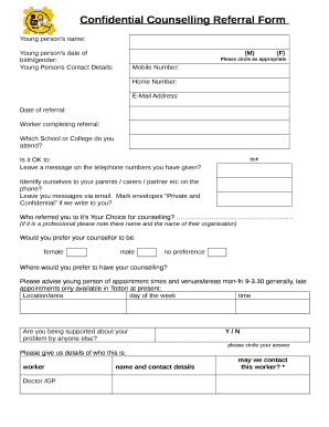 airSlate SignNow streamlines the process of creating and sending a Confidential Counselling Referral Form. With our easy-to-use platform, you can quickly customize the form, send it for eSignature, and track its status, ensuring a smooth referral process.