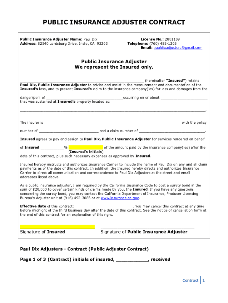Get more for california public adjuster contract