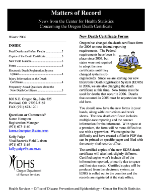 Get more for Matters Of Record Kelly doc Public Health Oregon