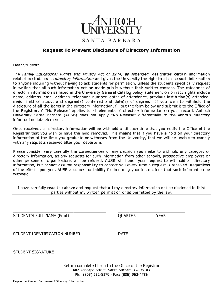 Related searches to Request To Prevent Disclosure Of Directory Information FERPA