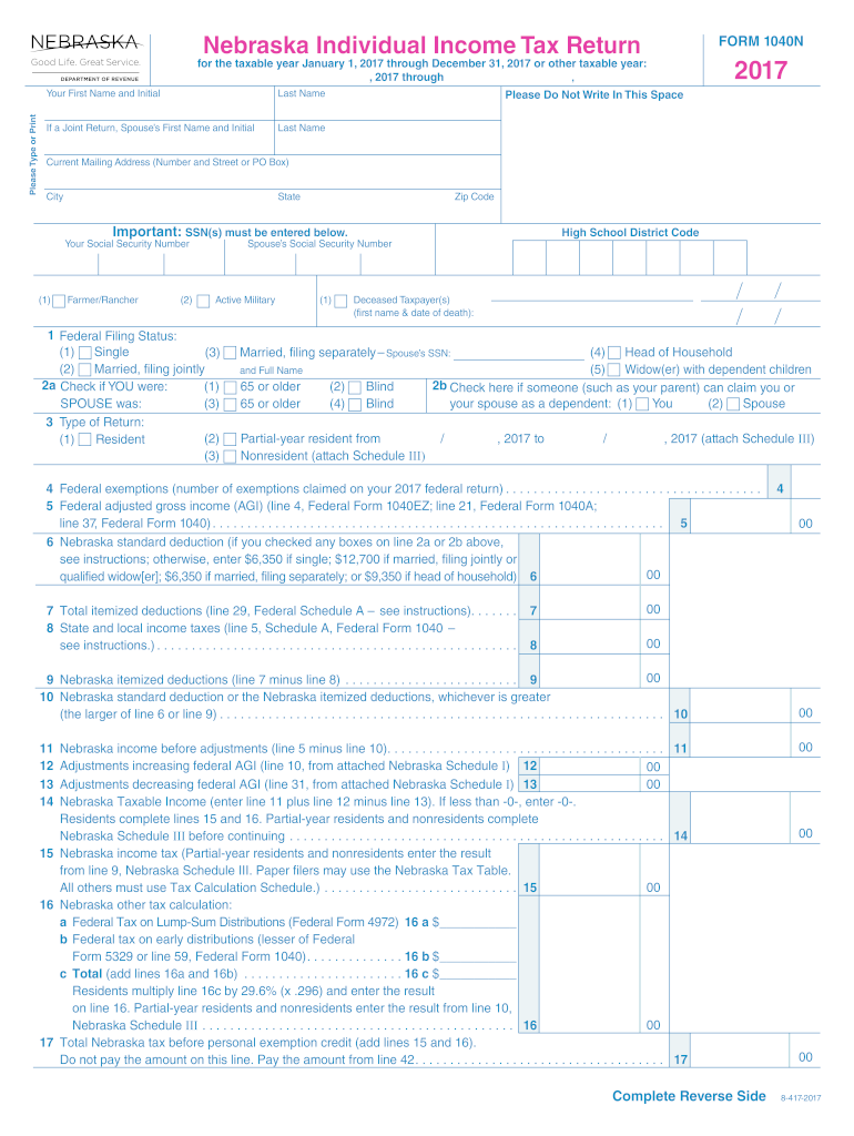 Find and fill out the correct 1040n 2017 form
