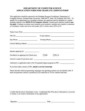 Get more for Department Of Computer Science Application Portland State University