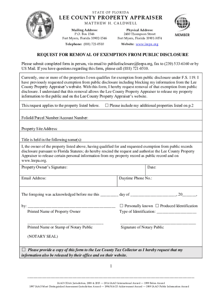Find and fill out the correct request for removal of exemption from public disclosure with tc2021