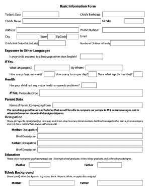 Get more for Basic Information Form Exposure To Other Languages If Yes, Health