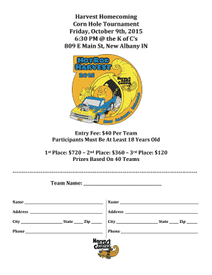 Get more for Cornhole Tournament Registration Form Harvest Homecoming