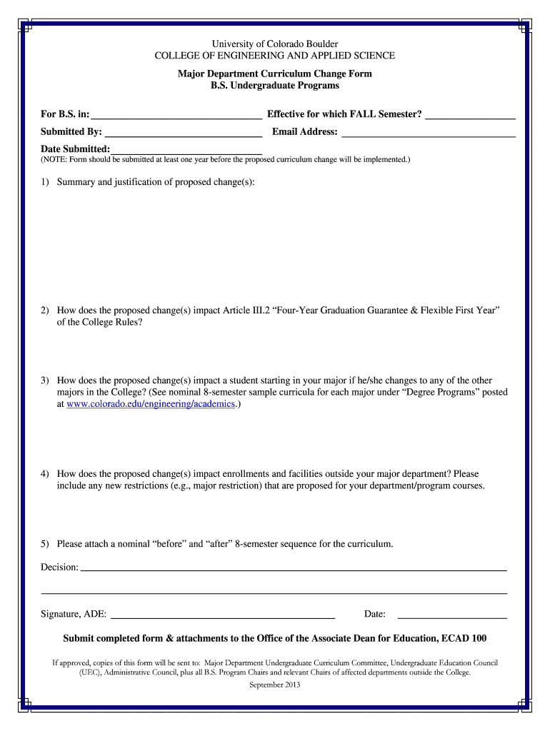 Completing the Major Department Curriculum Change Form CEAS B S involves a systematic approach: