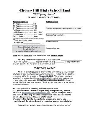 Get more for PLAYBILL AD CONTRACT FORM Cherry Hill East Theatre Boosters