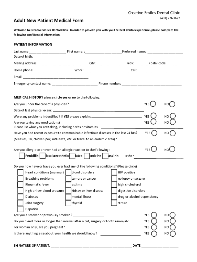 Get more for Adult New Patient Medical Form Creative Smiles
