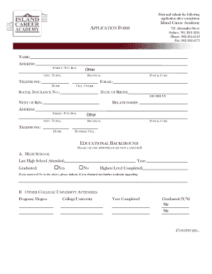 The form titled "To Continue The Application Island Career Academy" is designed for individuals seeking to advance their education and career opportunities through the Island Career Academy. This application form is crucial for prospective students to express their interest and provide necessary information for enrollment in various programs offered by the academy. It typically includes personal details, educational background, and career aspirations, ensuring that applicants are matched with suitable courses that align with their goals.