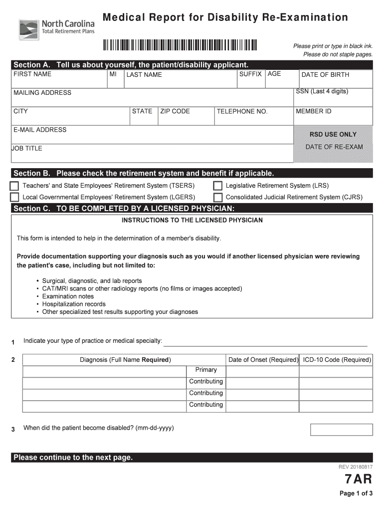 Find and fill out the correct form 7ar nc disability