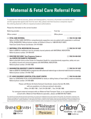 Get more for Maternal & Fetal Care Referral Form Barnes Jewish Hospital Barnesjewish