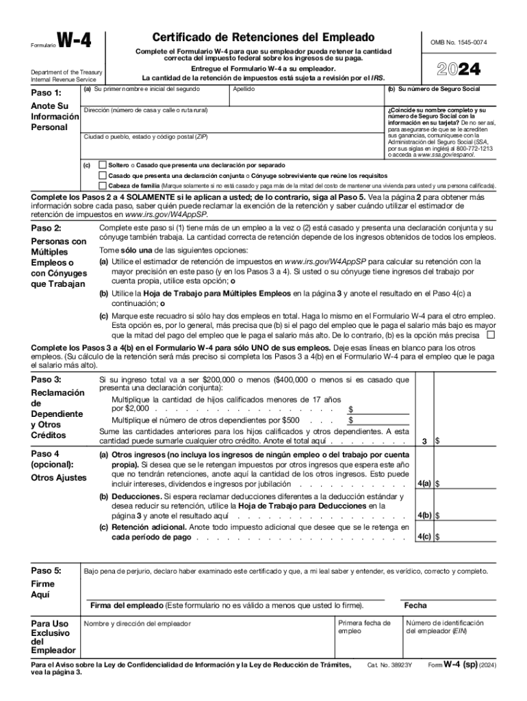 The w 4 Spanish form is the Spanish version of the IRS W-4 form, which employees use to indicate their tax withholding preferences. It is important because it ensures that Spanish-speaking employees can accurately complete their tax information, helping them avoid under- or over-withholding of taxes.