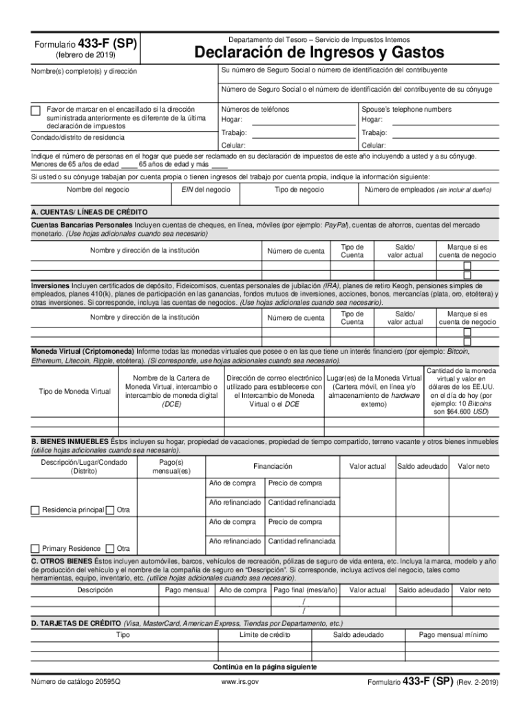 Get more for Form 433 F SP Rev 2 Collection Information Statement Spanish Version