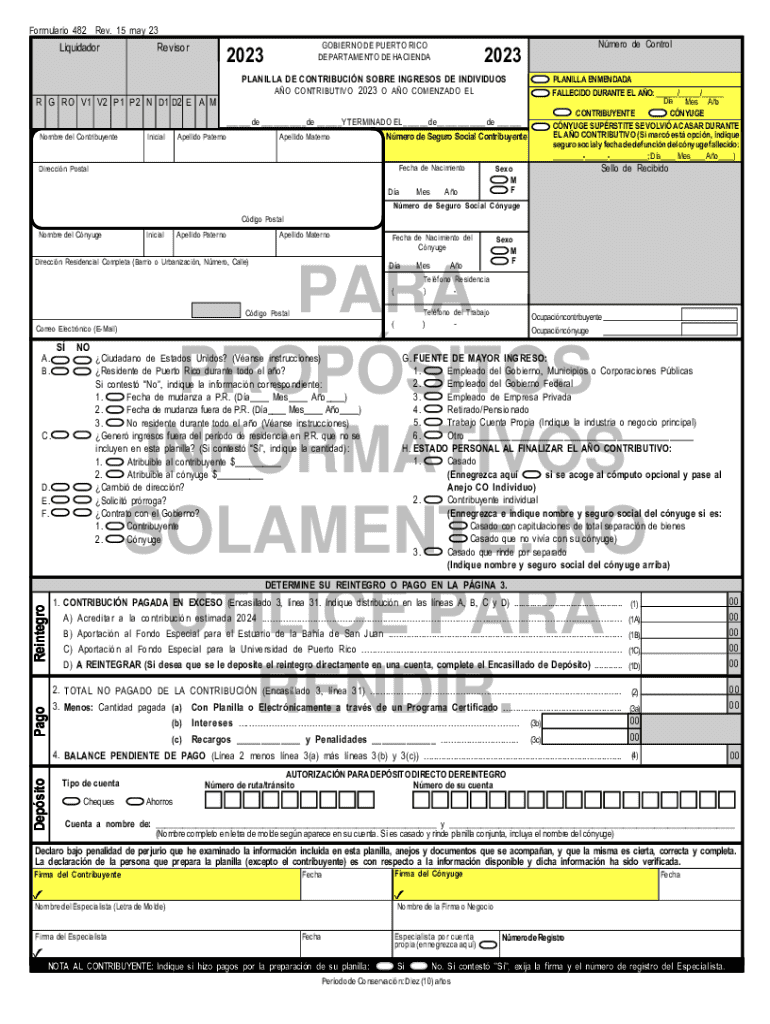 The Puerto Rico 482 form, also known as the Formulario 482 Planilla, is a crucial document for individuals and businesses in Puerto Rico. This form is primarily used for income tax purposes, allowing taxpayers to report their income and calculate their tax liability. It is essential for ensuring compliance with local tax laws and regulations, and it serves as a foundational element of the tax filing process in Puerto Rico.