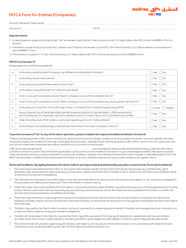 The Mashreq Bank FATCA form is a crucial document for U.S. taxpayers with foreign financial accounts. It ensures compliance with the Foreign Account Tax Compliance Act (FATCA), which mandates that foreign financial institutions report information about financial accounts held by U.S. taxpayers. This form is essential for individuals and entities to disclose their foreign financial interests accurately.