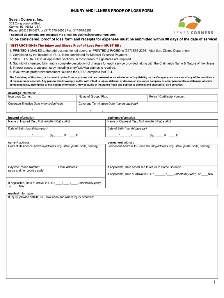 The Seven Form Claim is a specific document used in the context of insurance claims, particularly for losses related to illness or injury. This form serves as a formal request for compensation from an insurance provider, detailing the circumstances of the loss and the associated costs. It is essential for individuals seeking to recover expenses incurred due to medical conditions or accidents. Understanding the purpose and requirements of this form is crucial for ensuring a smooth claims process.