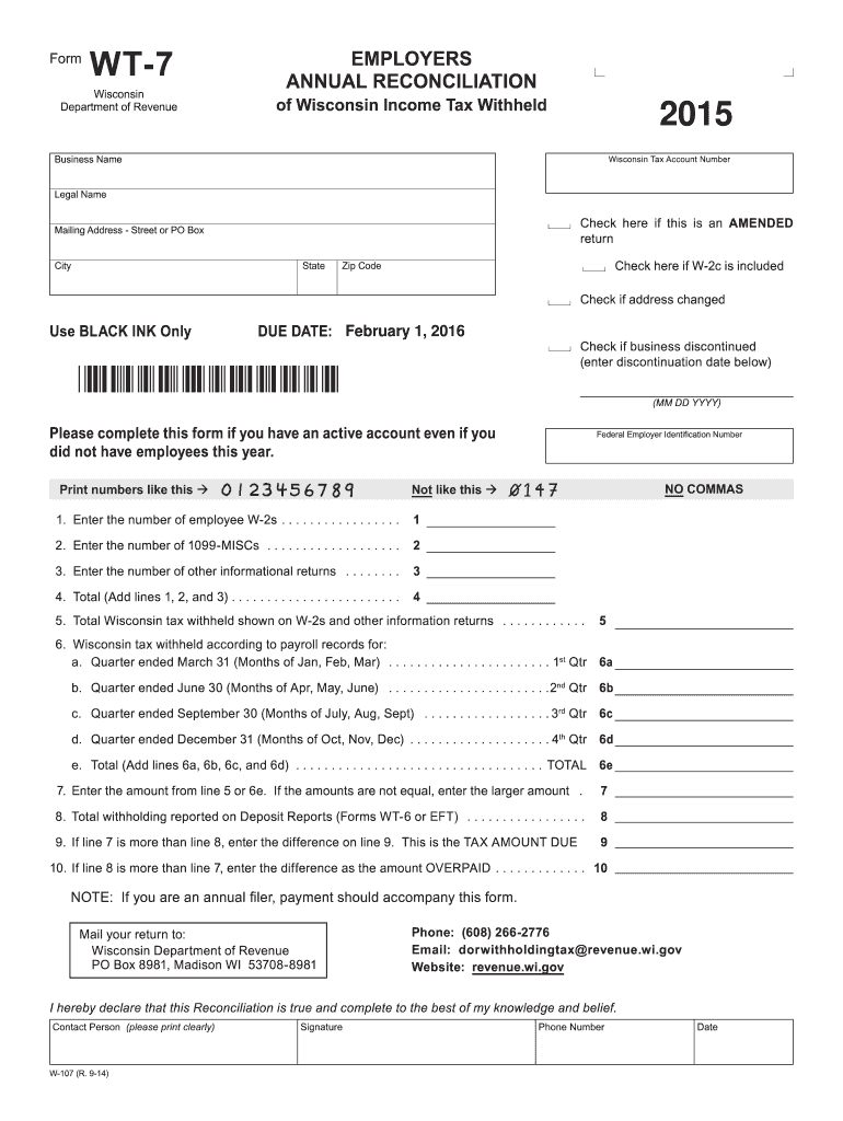 Find and fill out the correct wisconsin form wt 7 2015
