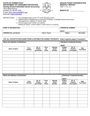 The cgf11 ticket monthly fillable is issued by the Connecticut state government, specifically through the appropriate regulatory agency responsible for overseeing ticket sales and related financial reporting. It is essential for organizations to use the most up-to-date version of the form to ensure compliance with current regulations and standards.