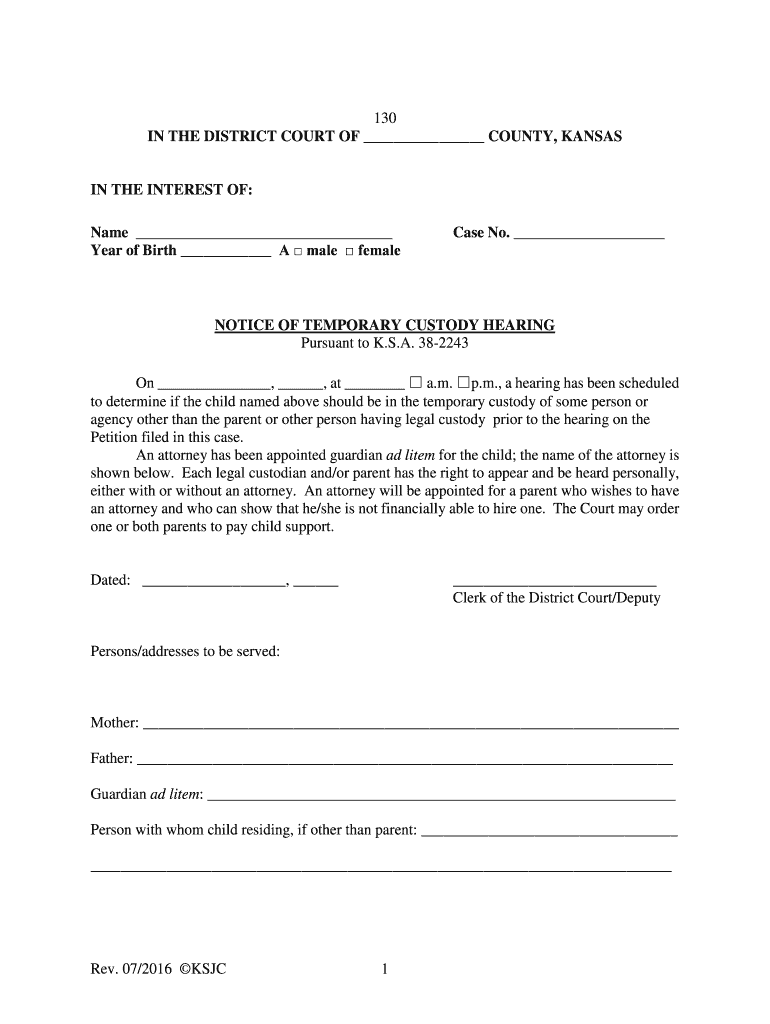 - Find ks notice temporary custody form and then click Get Form to begin.