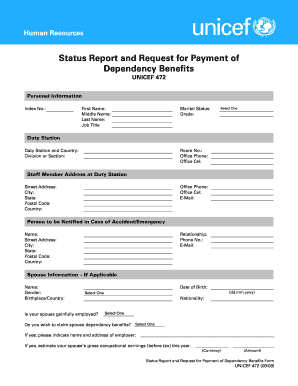 Find and fill out the correct unicef 472 status report and request for payment of unicef
