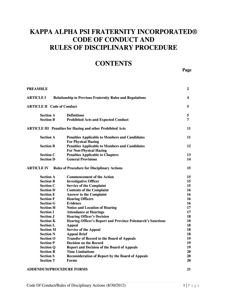 The kappa alpha psi code of conduct emphasizes principles such as brotherhood, scholarship, service, and fellowship. It also addresses issues related to ethical behavior and community service. Adhering to these principles helps foster a positive fraternity experience and strengthens the bond among members.