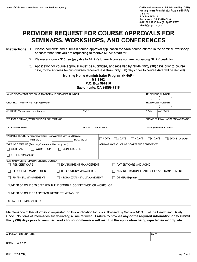 PROVIDER REQUEST for COURSE APPROVALS for SEMINARS Cdph Ca Form