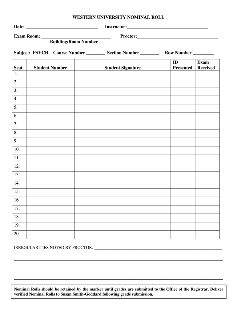 - Submit the completed nominal roll to the appropriate administrative office for processing.