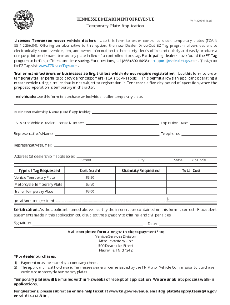 Completing the application for a temporary license plate in Tennessee involves a series of straightforward steps: