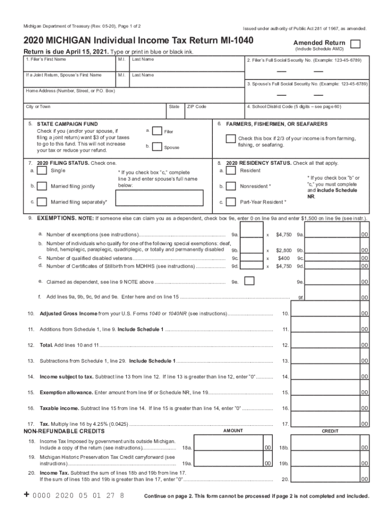 The deadline for filing the mi 1040 form typically aligns with the federal tax return deadline, which is usually April fifteenth. If this date falls on a weekend or holiday, the deadline may be extended to the next business day. It is important for taxpayers to be aware of these deadlines to avoid penalties and interest on late payments. Additionally, if you anticipate needing more time to file, you may apply for an extension, but this does not extend the time to pay any taxes owed.