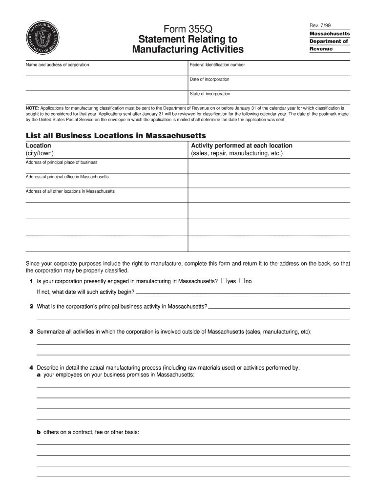 How to use the Form 355Q Statement Relating To Manufacturing Activities Mass Gov