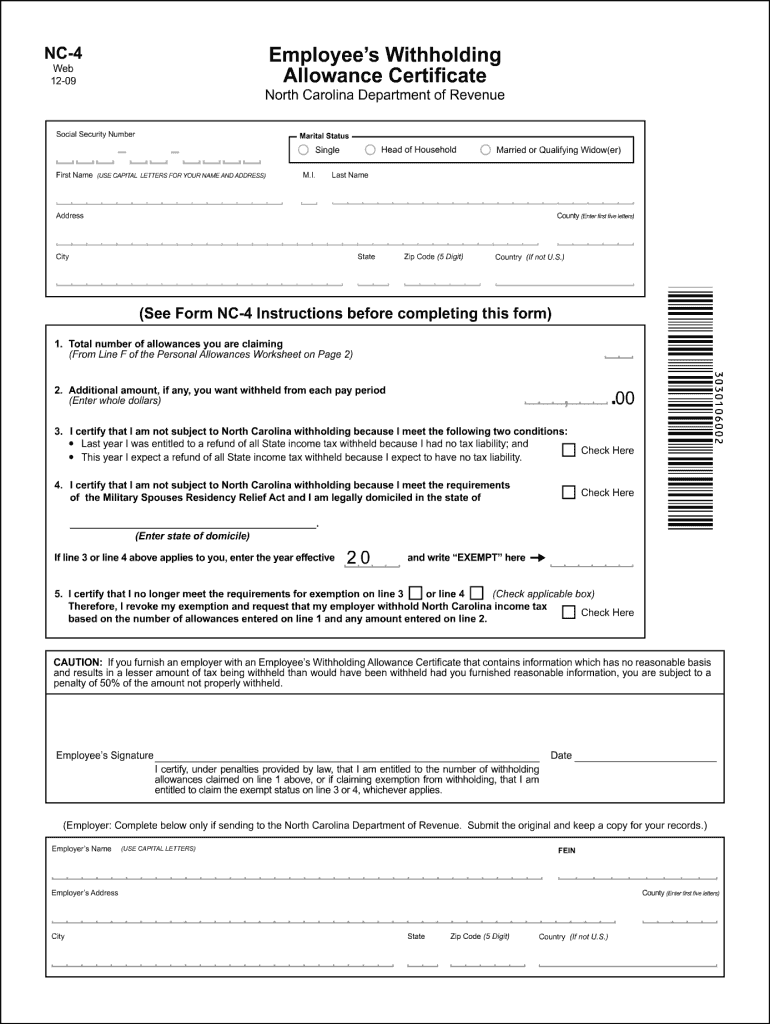 Find and fill out the correct 2009 nc form