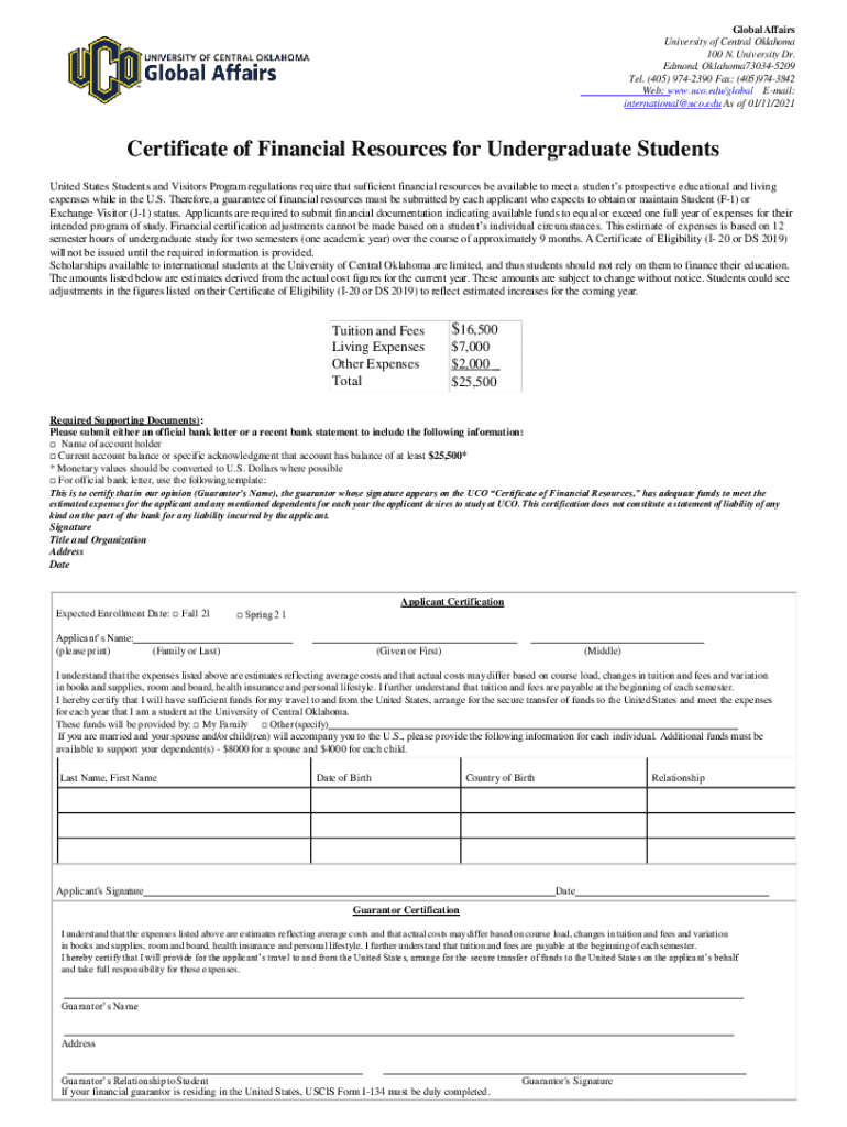 Certificate of Financial Resources Form Office of Global
