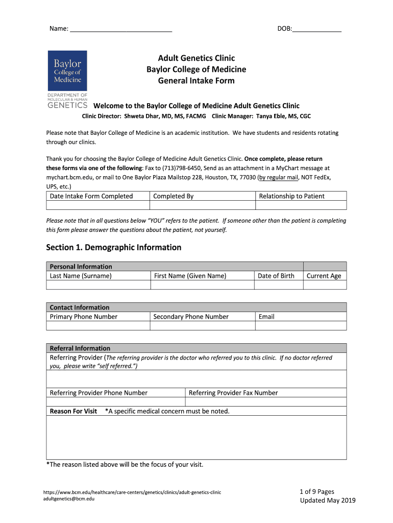 Get more for Adult Genetics Clinic