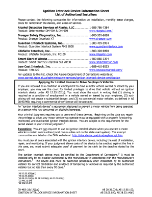 Using the CR483 involves several steps to ensure that the form is completed accurately and submitted correctly. First, individuals must gather necessary personal information, including their driver's license number and details about their DUI conviction. Next, they should fill out the form, providing all requested information regarding their situation and the ignition interlock device. After completing the form, it must be submitted to the appropriate state agency, often the Department of Motor Vehicles (DMV) in Alaska, to initiate the process of obtaining the interlock device.