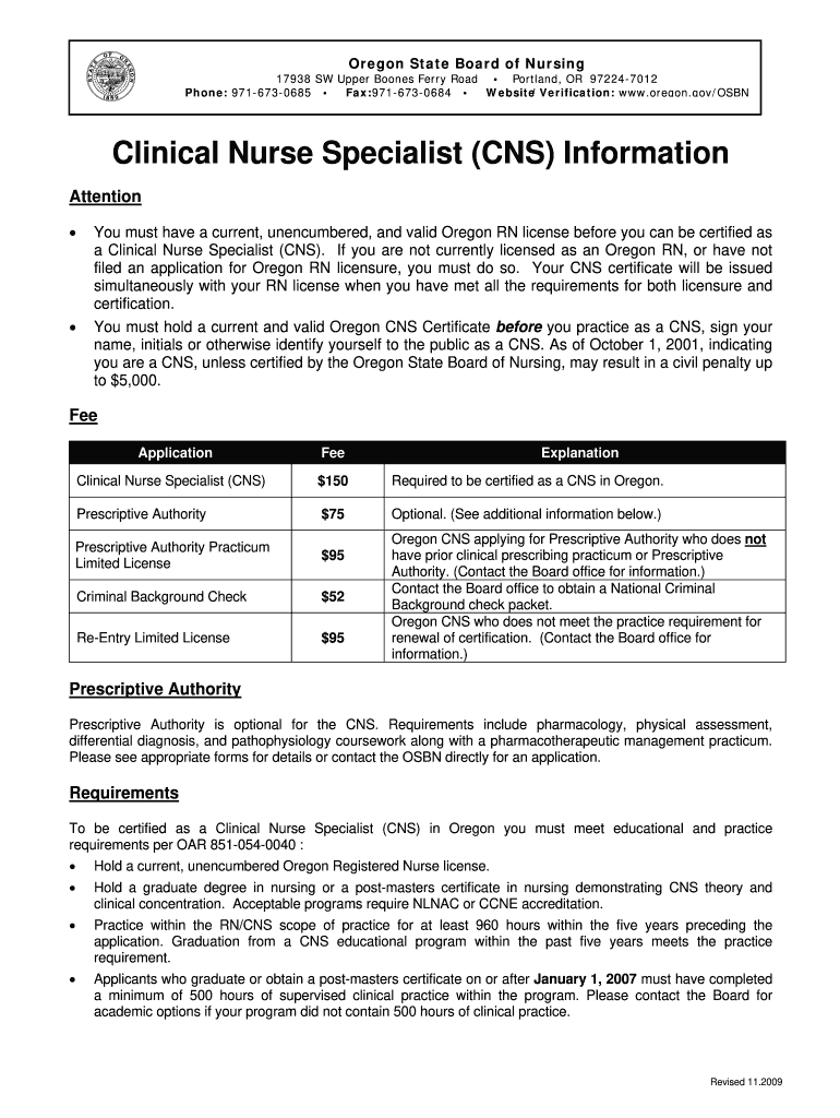 OSBN CNS Application Packet Oregon Gov Oregon Form
