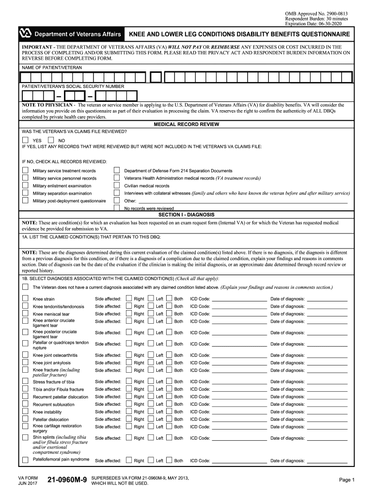 Find and fill out the correct knee dbq va