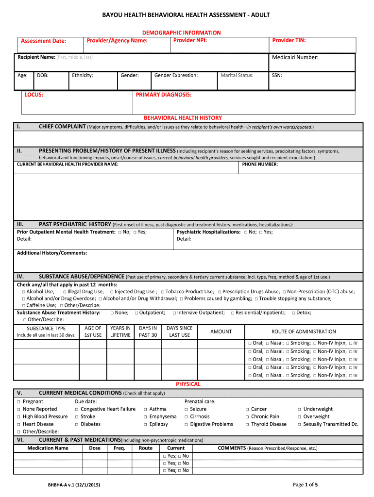 The Bayou Health Assessment is a comprehensive evaluation designed to assess the behavioral health needs of individuals, particularly focusing on adults and children. This assessment plays a crucial role in determining the appropriate mental health services and support required for each individual. It encompasses various aspects of mental health, including emotional, psychological, and social well-being, ensuring a holistic approach to care.