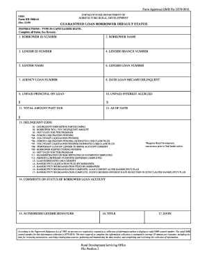 A guaranteed loan default occurs when a borrower fails to meet the repayment obligations outlined in their loan agreement. This situation can arise from various factors, including financial hardship, loss of income, or unforeseen circumstances. When a borrower defaults, it can lead to serious consequences, such as damage to their credit score and potential legal action from lenders. In the context of government-backed loans, like the RD 1980 44 form, the implications of default can also affect the lender's ability to recover funds through government guarantees.