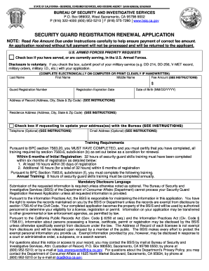 The use of the Security Guard Renewal Online is legally valid, provided that applicants adhere to specific requirements set forth by regulatory bodies. The process complies with eSignature laws such as ESIGN and UETA, ensuring that electronic signatures are recognized as legally binding. It is essential for applicants to use a reliable platform that guarantees the security and integrity of their submissions.