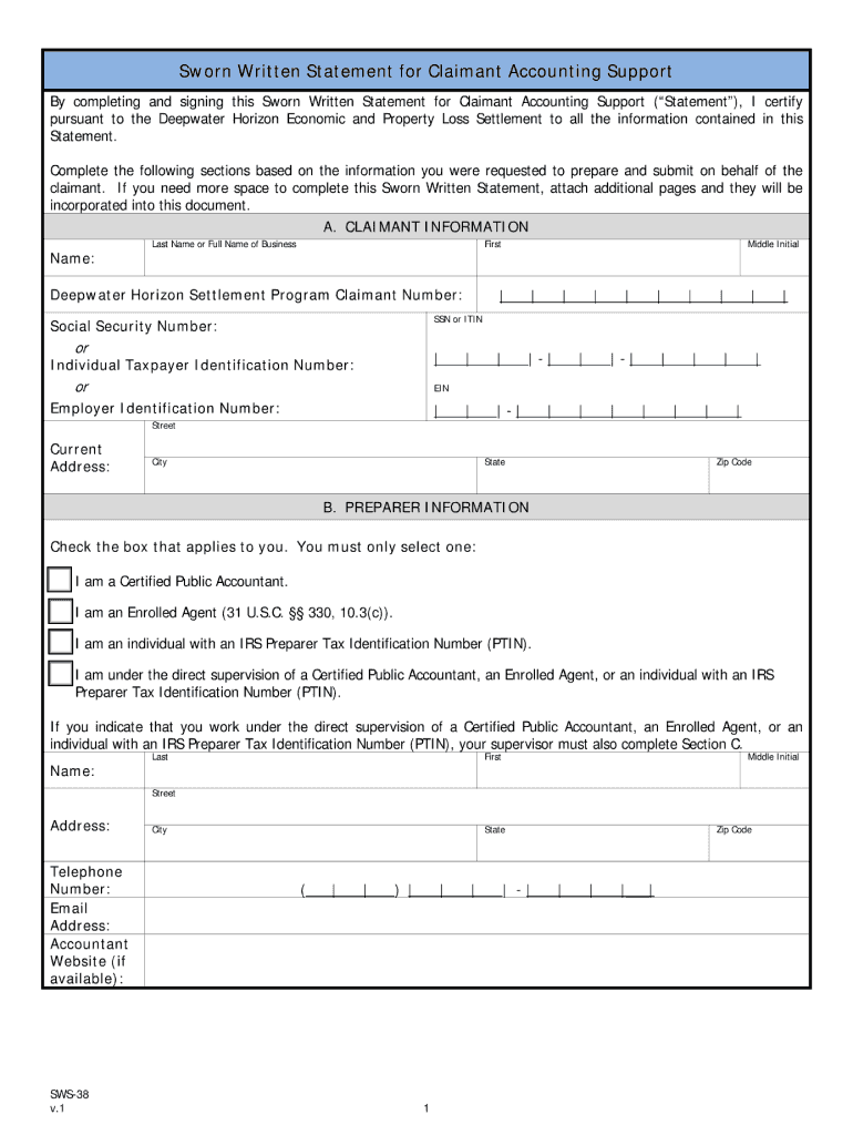 - Statement of truth: A declaration affirming that the information is accurate to the best of the CPA's knowledge.