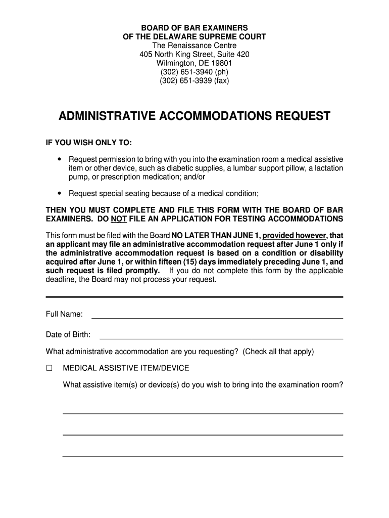 Using the Administrative Accommodations Form involves several key steps to ensure proper submission and processing. First, individuals should carefully read the instructions provided with the form to understand the requirements. Next, fill out the form completely, providing accurate and detailed information regarding the requested accommodations. It is essential to include any supporting documentation that may strengthen the request. Once completed, the form can be submitted through the designated method, whether online, by mail, or in person, depending on the institution's guidelines.