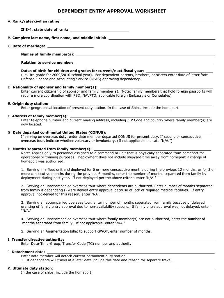 The dependent entry approval is a formal process used primarily by military families to secure entry for dependents into the United States. This process is essential for ensuring that family members of service members can live and travel within the country, especially when relocating due to military orders. The approval is typically required for dependents who are not U.S. citizens, and it helps streamline their entry by verifying their relationship to the service member and their eligibility for entry.